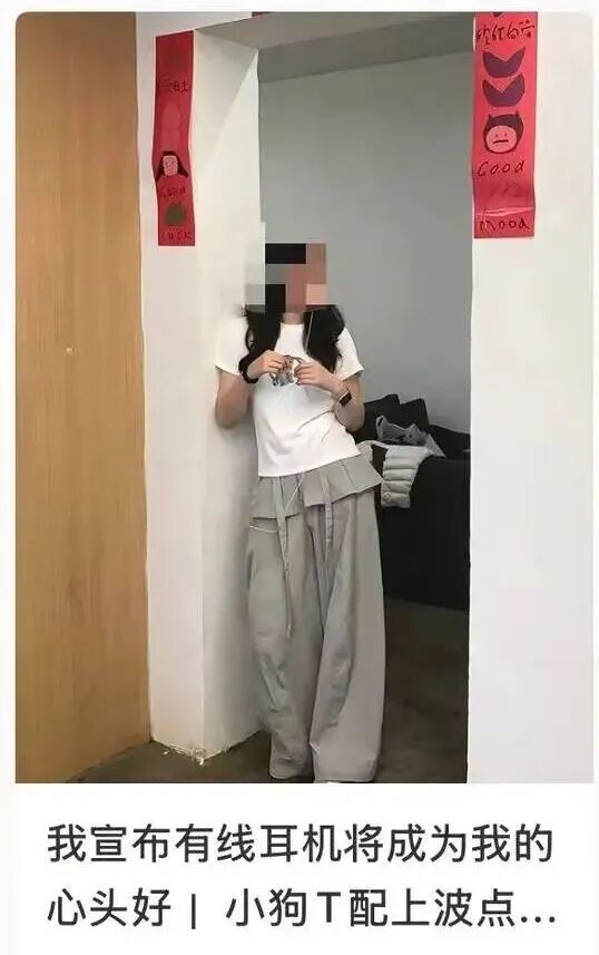 网络上流行的有线耳机穿搭