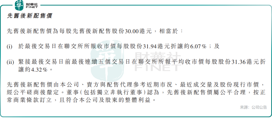 在此次配股中,威胜控股每股30港元的配售价较前一日收盘价折让约6.07%,配售股份占已发行股本约5.02%。